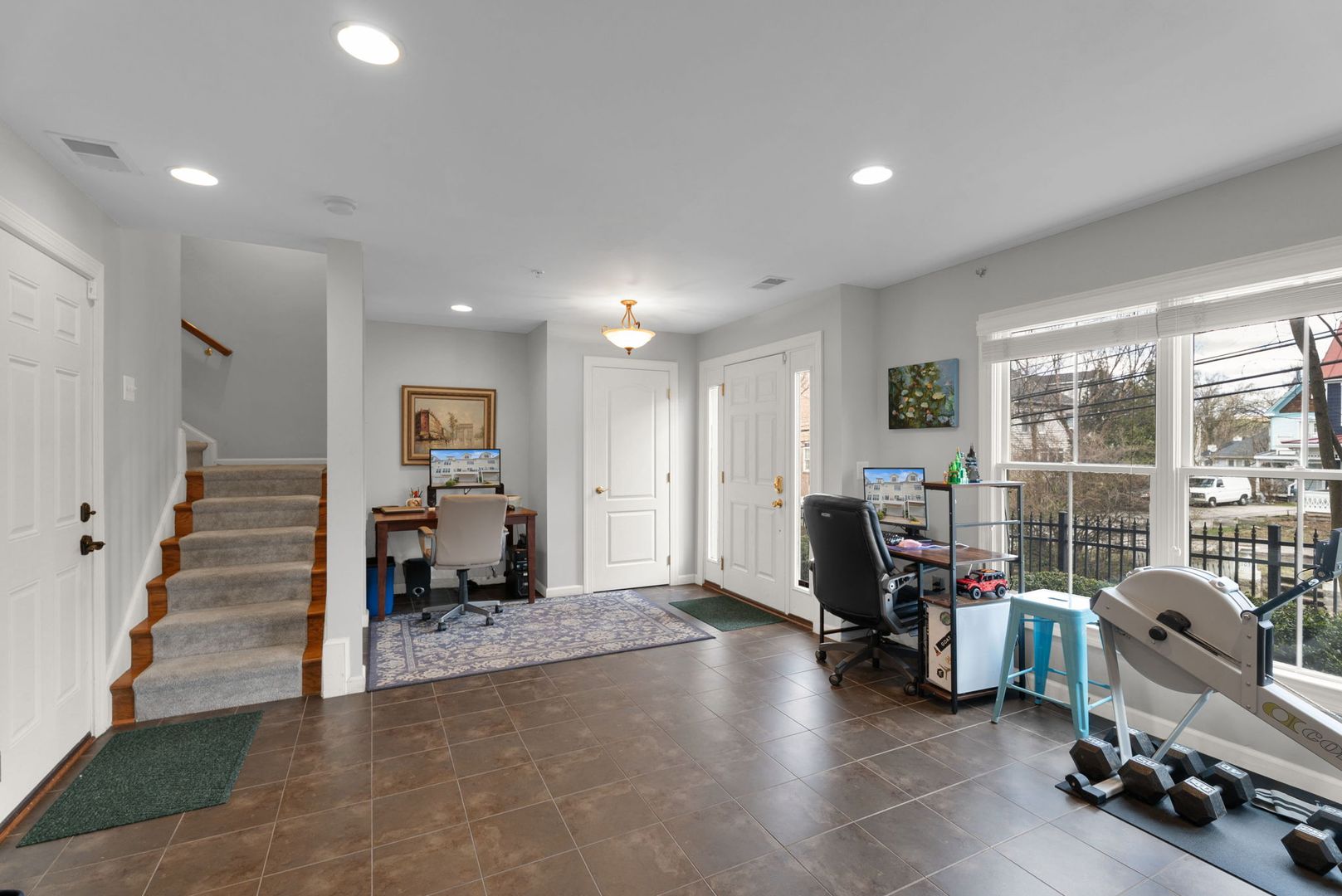 The entry-level recreation room provides the perfect flex space for a home office, gym, or media lounge. The main level features a bright, open kitchen with island seating and abundant natural light, flowing seamlessly into the formal dining area and inviting living room with fireplace — ideal for everyday living and entertaining. Upstairs, the spacious primary suite includes a luxurious bath with dual vanity, soaking tub, and separate shower. A private top-floor bedroom with its own full bath offers the perfect guest suite or quiet retreat.