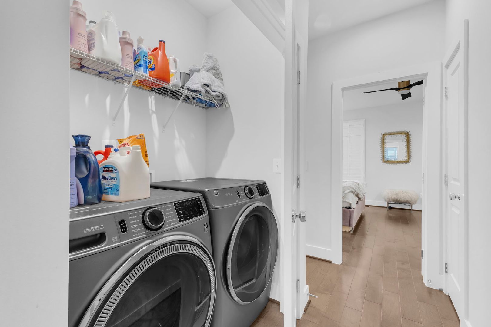 • Third Level: Expansive owner’s suite with soaring ceilings, large windows, a luxurious ensuite bath (double vanity, walk-in tile shower, massive closet), plus a second generous bedroom with its own ensuite bath and oversized closet. Includes a modern laundry room with newer washer/dryer (included).