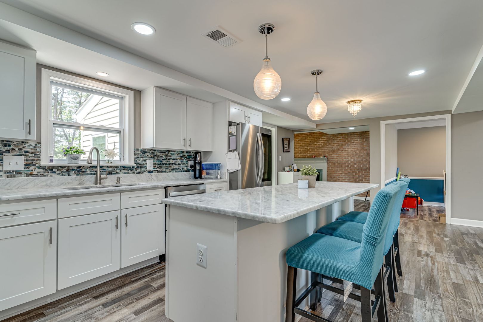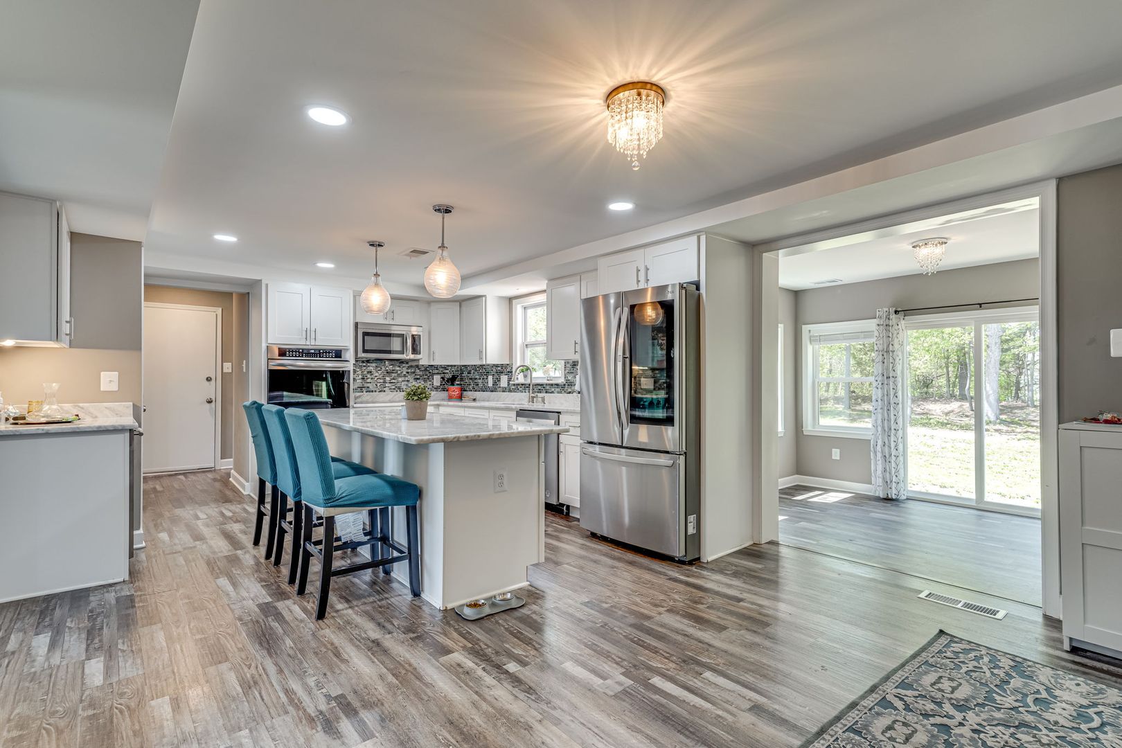 This delightful home offers five bedrooms and three and a half baths, providing ample space for comfortable living. Each bedroom is generously sized, offering plenty of room for rest and relaxation. The primary suite boasts a spacious layout, complete with a luxurious en-suite bathroom and ample closet space. The open floor plan creates a seamless flow between the living spaces, making it ideal for entertaining guests or simply enjoying quality time with family. The well-appointed and newly updated kitchen features modern appliances, ample counter space, and a convenient breakfast bar, perfect for casual meals or hosting dinner parties.